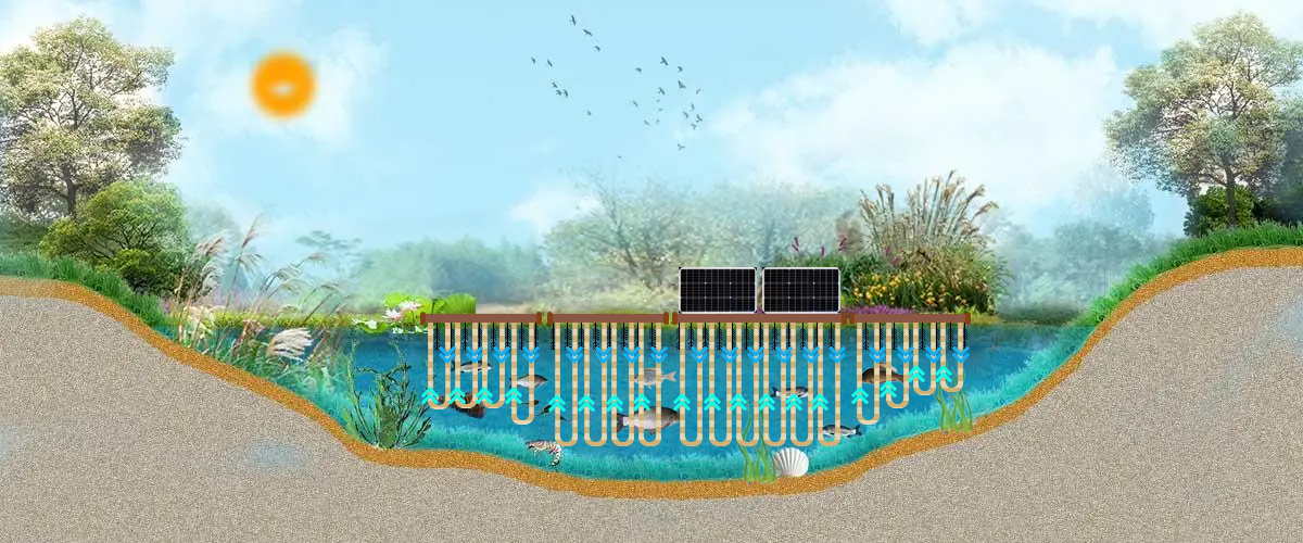 该体系是面向流域内水生态系统环境修复的产品体系,主要以高效富氧设备为核心,组合纳米碳纤维技术、接触氧化生态浮床技术、生态透水坝技术、生态湿地技术搭建集成的综合治理技术体系;主要功能是净化水质、恢复水体净化能力、提高水质质量,完善整体生态系统、维持生境平衡;解决水生态系统环境的不健全、不稳定等现象,丰富水生生物的多样性,防止返黑返臭现象发生;为用户提供流域水质提升、黑臭水体治理、水质净化提升、河湖生态修复等相关服务。